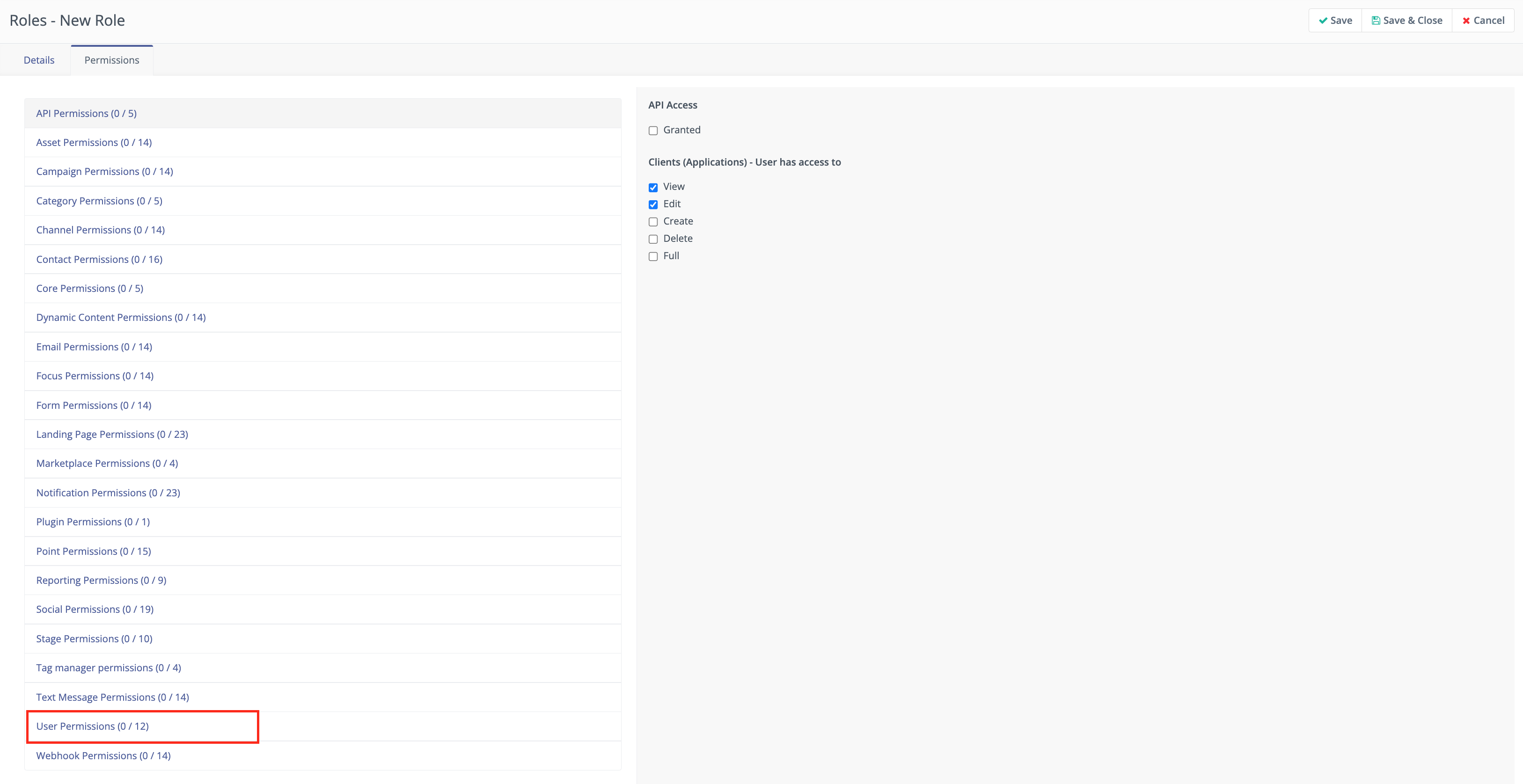 It’s recommended to create a non-Admin Role as the default Role for created Users. Select this Role in the ‘Default Role for created Users’ dropdown. For more information, see Users and Roles.