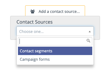 You can select a mix of both types of Contact sources for your Campaign. To use both, click the grey selector button on either the left or right side of the Contact source box to add whichever source type you didn’t originally select.