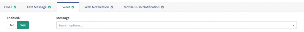 To enable a Channel, click Yes on the slider, and select - or create - the message.