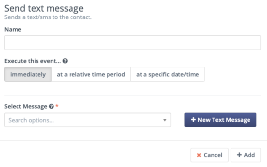 It’s also possible to create a Text Message from within the Campaign Builder. To do this, select the Campaign Action of Send Text Message and press the New Text Message button rather than selecting an existing Text Message in the dropdown.