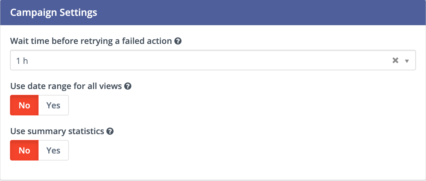 Wait time before retrying a failed action - If for any reason a Campaign action doesn’t execute, this is the length of time Mautic waits before trying again.