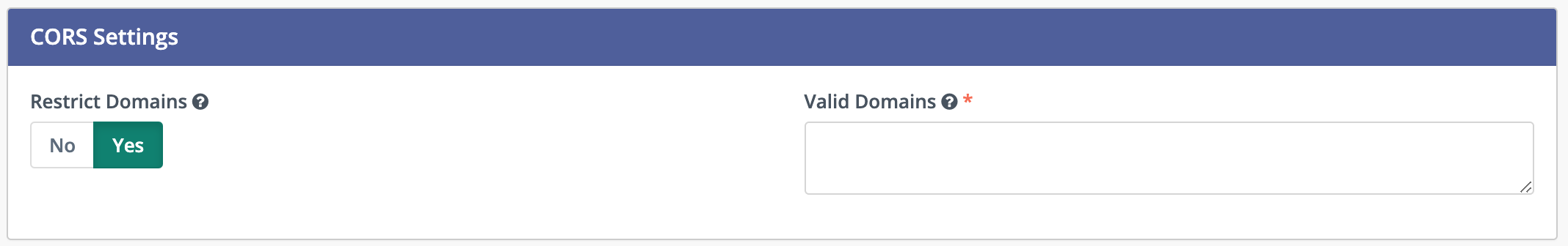 In the Valid Domains field, don’t include a slash at the end. For example, use https://www.example.com instead of https://www.example.com/.