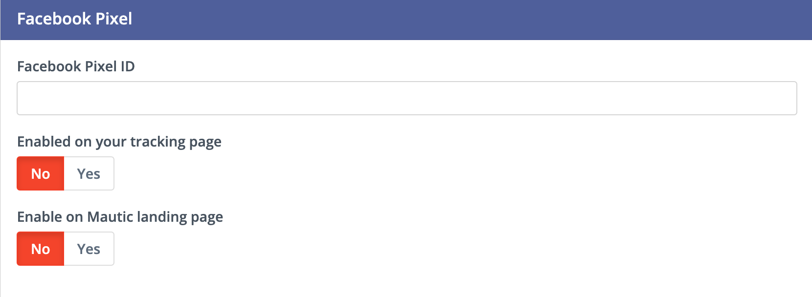 Enabled on your tracking Landing Page - Select Yes to have Mautic append the Facebook Pixel to the Mautic tracking code to track Landing Pages where the tracking code exists.