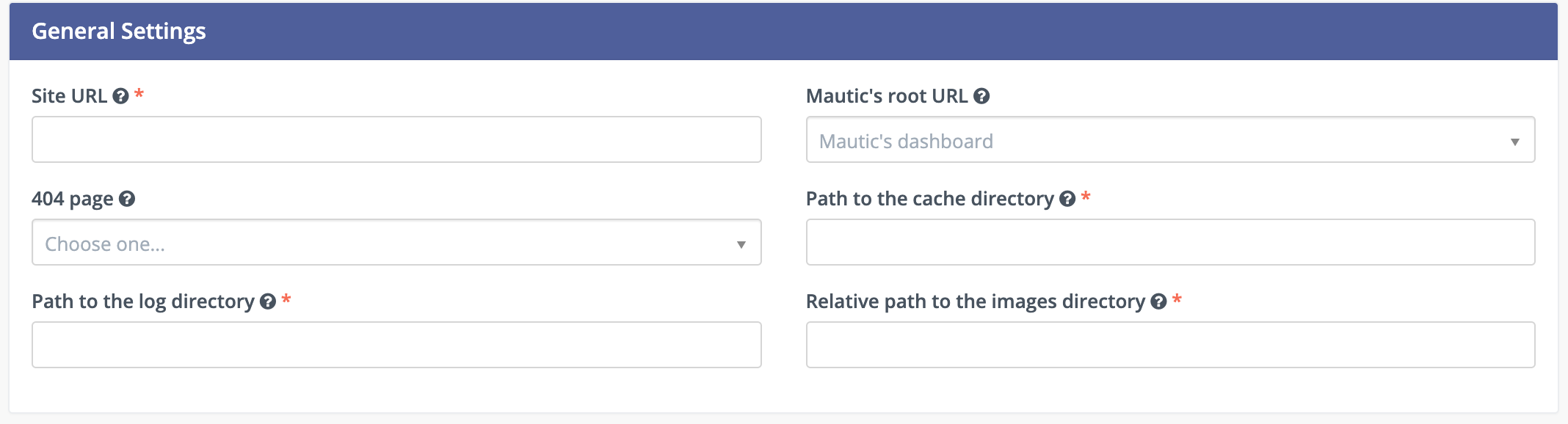 Site URL - This is where Mautic is physically installed. Set the URL for this site here. Cron jobs needs this to correctly determine absolute URLs when generating links for Emails, etc. It ‘s also called Mautic’s ‘base URL’.