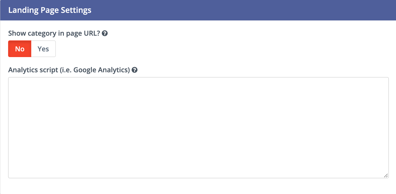 Show Category in Page URL? - If you use Categories, the Landing Page’s associated Category displays in the URL if you select Yes.