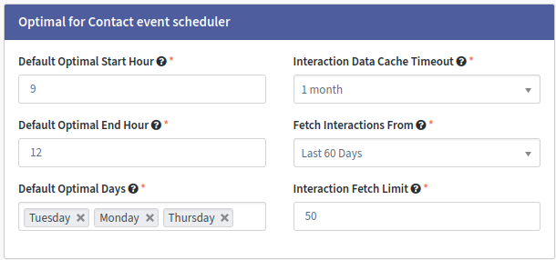 Default Optimal Start Hour - Set the default start hour for the optimal interaction window when specific Contact data is unavailable.