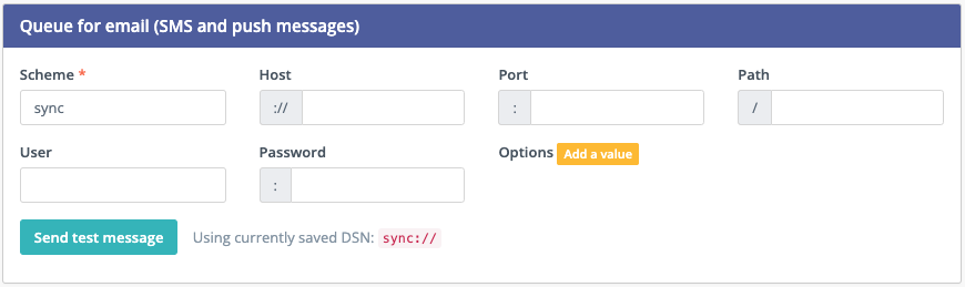 A fresh instance of Mautic has the queuing feature turned off (the queue DSN configuration is "sync://") as shown in the following screenshot.