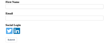 Select the Social Login field from the Form builder. Buttons for all authorized social platforms - for example Twitter, Facebook, LinkedIn automatically appear.