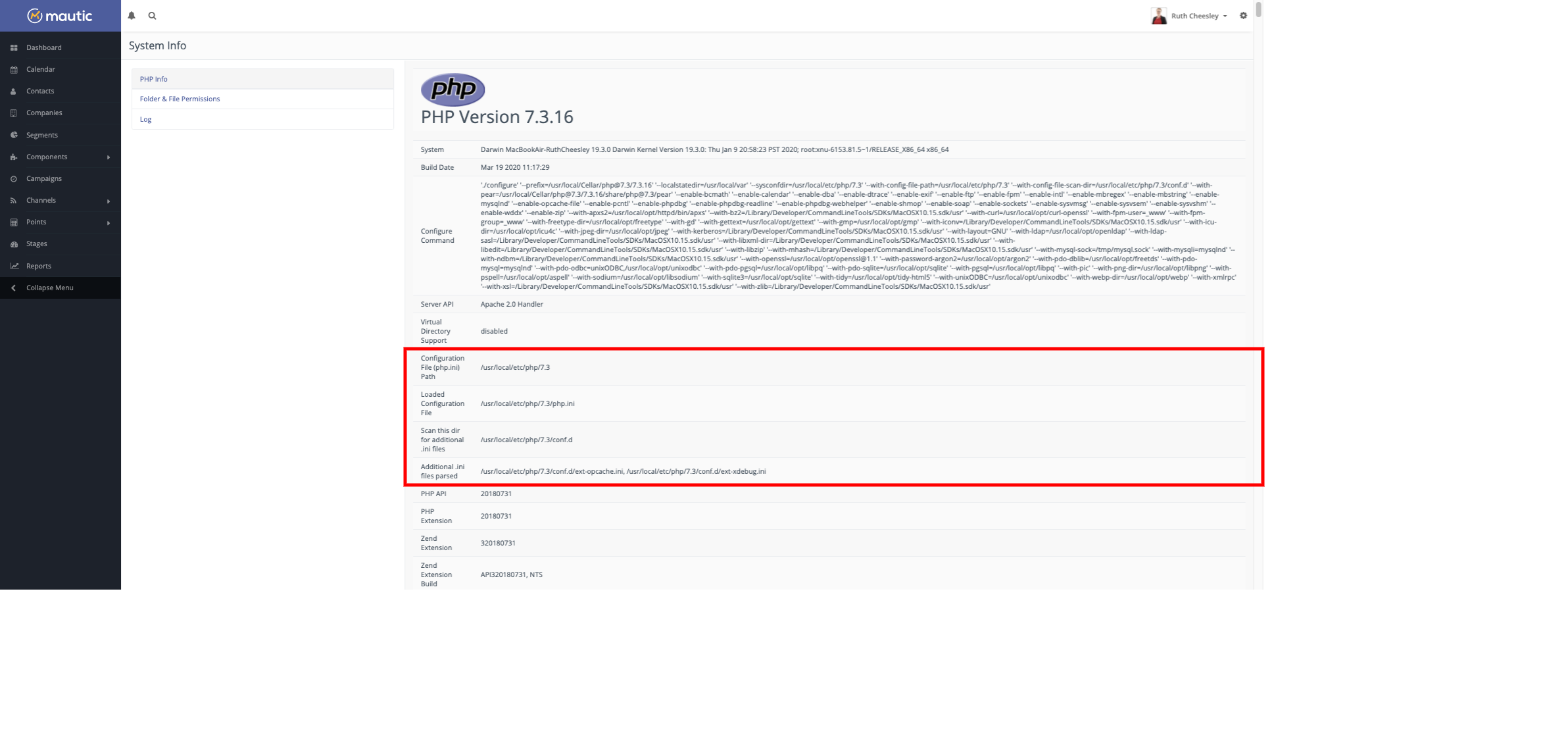 If you can’t access the System Info of Mautic, you can verify the path for php.ini using a command: